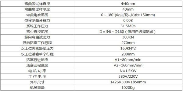 該機(jī)配置雙工位,在對(duì)試樣進(jìn)行了冷彎時(shí),一遍成型后,側(cè)向輔缸施加壓合力,使試樣過(guò)盈彎曲,消除殘余應(yīng)力,達(dá)到卸荷后彎曲角度更精確的等于180°。